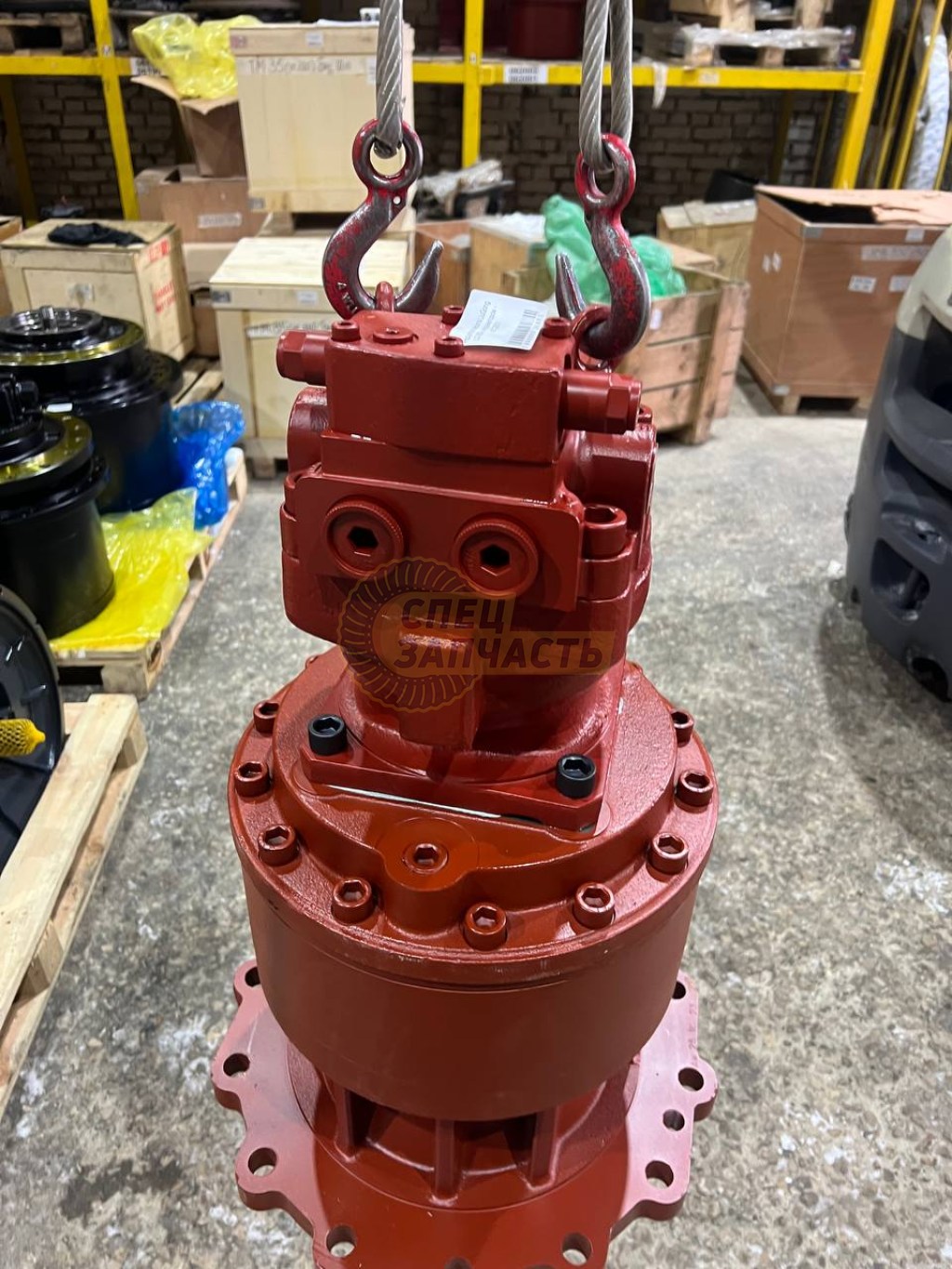 Гидромотор поворота получает масло от основного насоса (Kawasaki K5V212DPH) и вращает входной вал планетарного редуктора с высокими оборотами (порядка 1 500–2 500 об/мин).